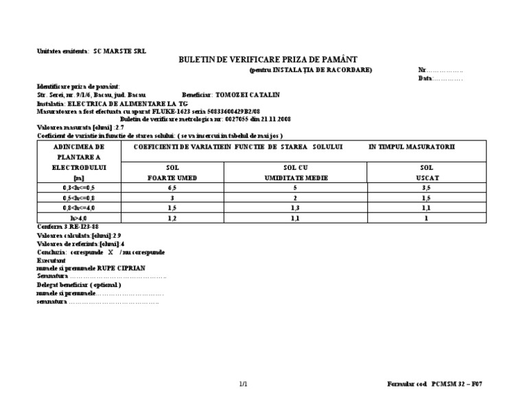 Normativ de ncercri i msurtori la echipamente i instalaii electrice. Determinarea rezistenġei de dispersie a diferitelor prize de pământ.