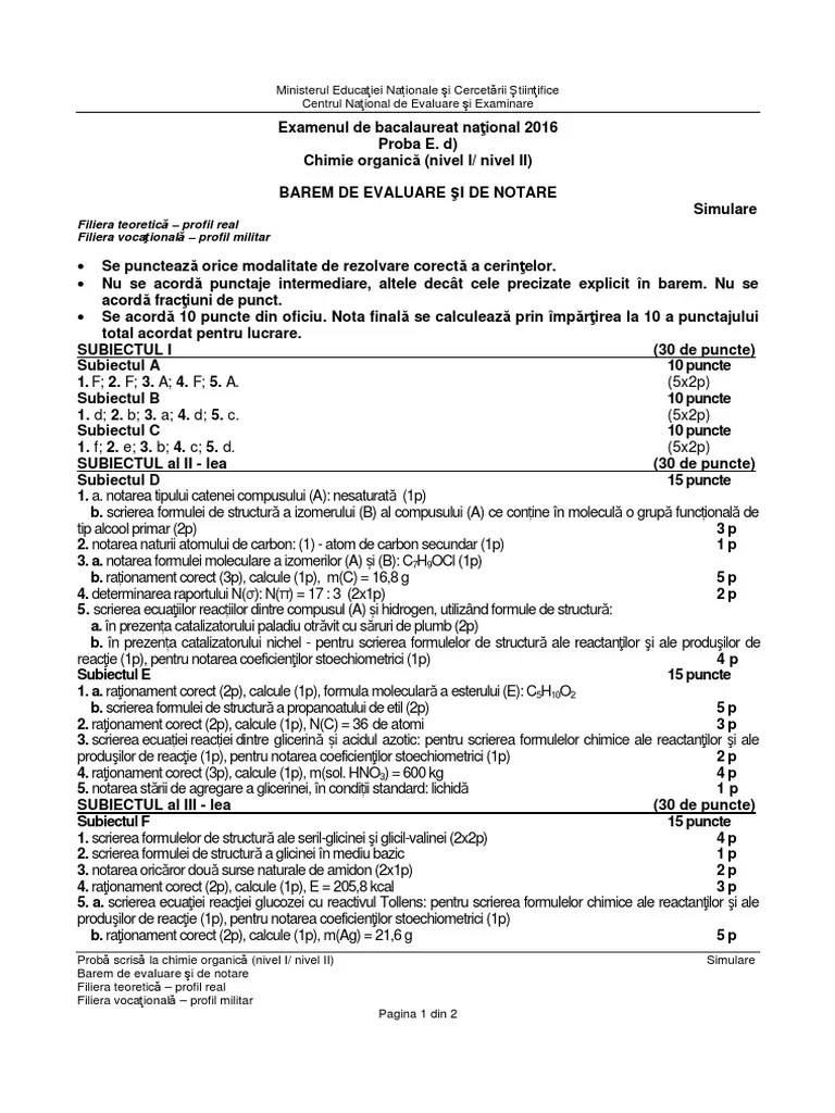 Barem Simulare Chimie Organica 2017 : Simulare Bac 2017 Proba La Alegere A Profilului Si Specializarii Subiecte Si Bareme Stirileprotv Ro