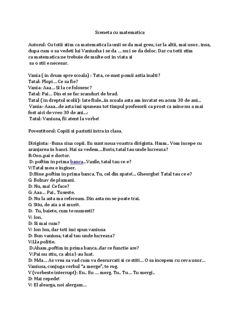 Scenete Amuzante Cu 4 Personaje - Sceneta Matematica Pdf
